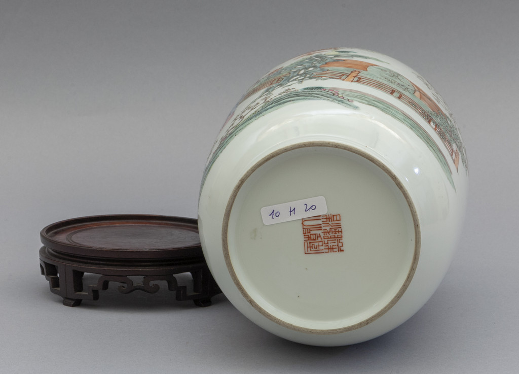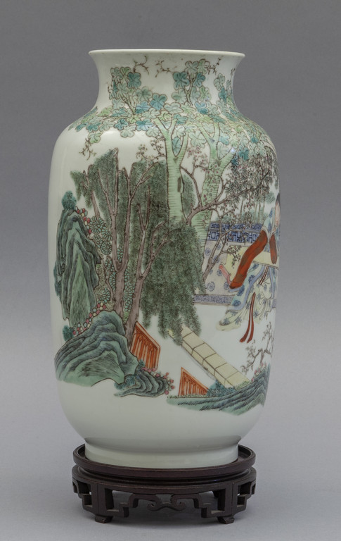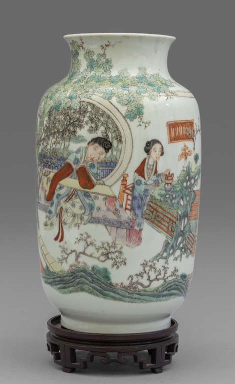 Vaso in porcellana decorato in policromia con figure femminili in un giardino, Cina sec.XX
