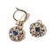Orecchini a forma di monachella (uno privo di chiusura) con incastonati due zaffiri di sintesi e piccole rosette di diamante