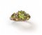 Anello in oro rosa con incastonati tre peridoti e piccoli diamanti taglio brillante