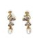 Orecchini in oro giallo e rosa di forma pendente con montate due perle coltivate periformi di mm 12x8, zaffiri taglio goccia per tot ct 1,20 circa e piccole rosette di diamante