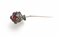 Spilla da cravatta epoca '800 in oro e argento brunito a forma di testa di moretto con corniola, granato e piccole turchesi
