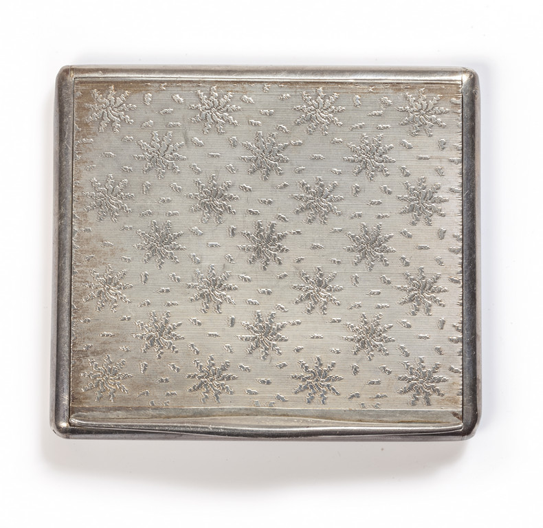 Porta cipria in argento con particolare incisione a fiocchi di neve