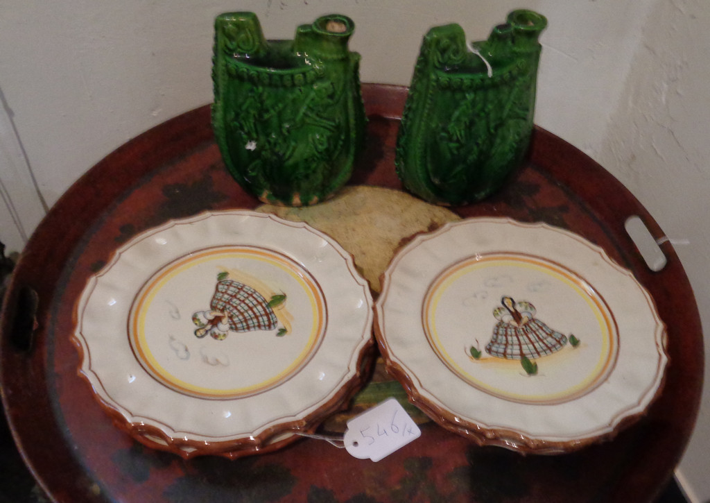 (h.cm.18) e sei piatti in terraglia decorati con donnine inizi sec.XX (diam.cm.22)