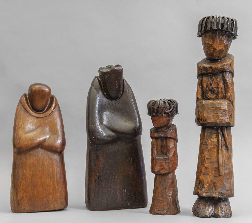 Quattro fraticelli in legno intagliato di recente