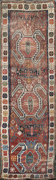Passiera con tre medaglioni centrali su fondo rosso, fine sec.XIX