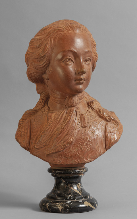 Busto di Luigi XVI bambino, scultura in terracotta su base in marmo sec.XIX