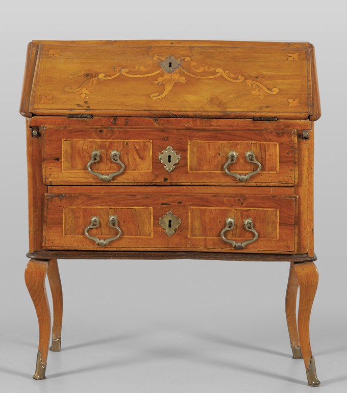 Piccola ribalta Luigi XIV in noce intarsiato, Piemonte sec. XVIII