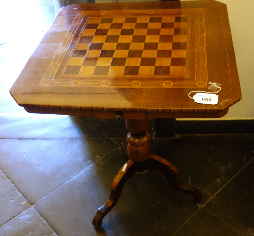 Tavolo da appoggio con scacchiera intarsiata sul piano, Rolo metà sec.XIX