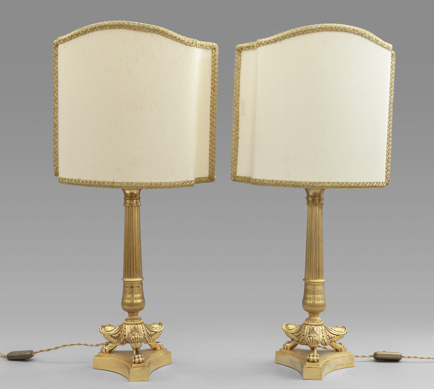 Coppia di lampade in bronzo dorato<br>h.cm.40
