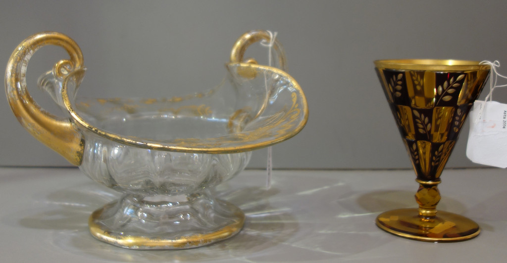 (cm.27x26xh.17) e bicchiere Boemia decorato con spighe (h.cm.15)