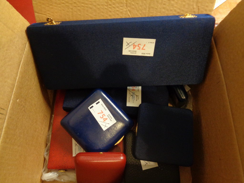 Varie medaglie commemorative nelle loro custodie