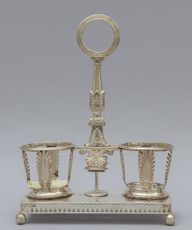 Oliera Carlo X in argento finemente sbalzato punzone testa di vecchio con n.1, sec. XIX