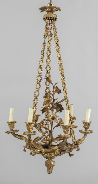 Lampadario in bronzo dorato a cinque luci, Francia metà sec.XIX