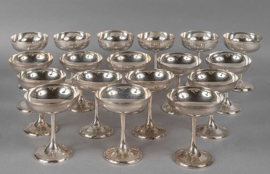 Dodici coppe in argento (11+1, gr.1000) e sei coppe in metallo argentato