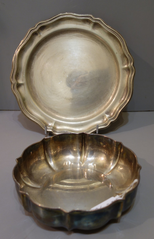 Piatto in argento in stile barocco diam.cm.29 e coppetta in argento sbalzato (diam.cm.20)