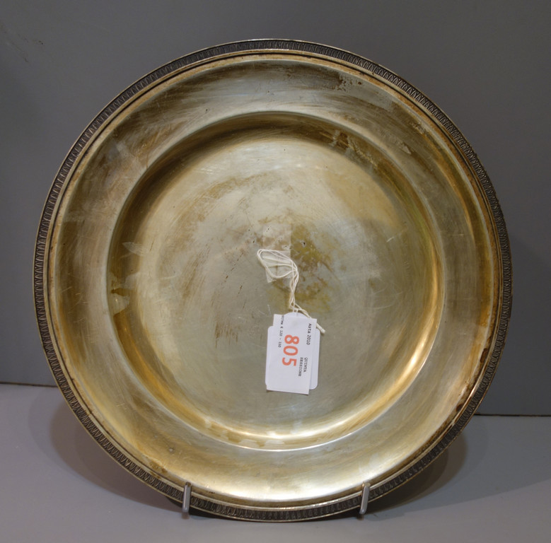 Piatto rotondo in argento<br>diam.cm.32, gr.520