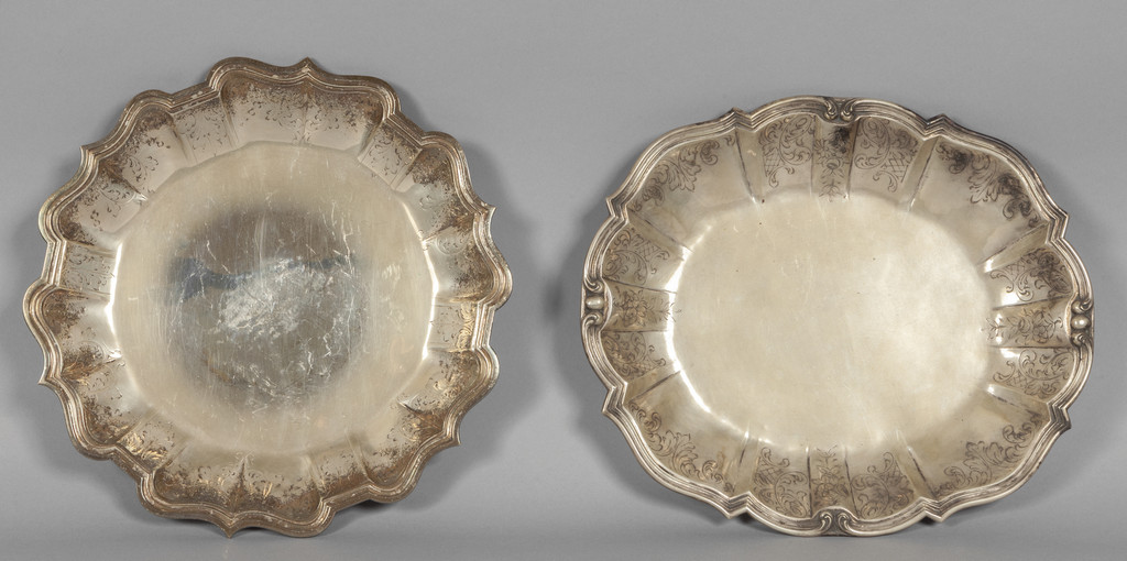 Due risottiere in argento lavorato inciso con fiori