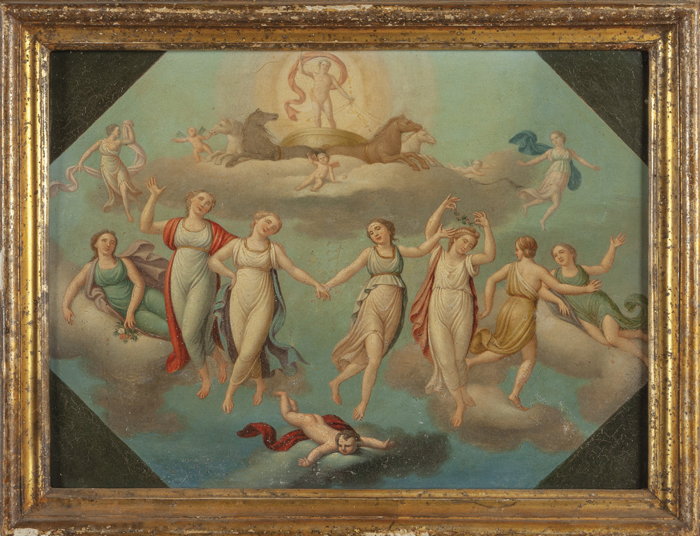 "Scena neoclassica" dipinto su lastra metallica,