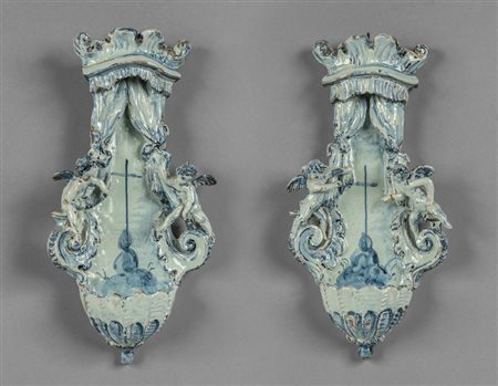 Coppia di acquasantiere in ceramica Vecchia Savona