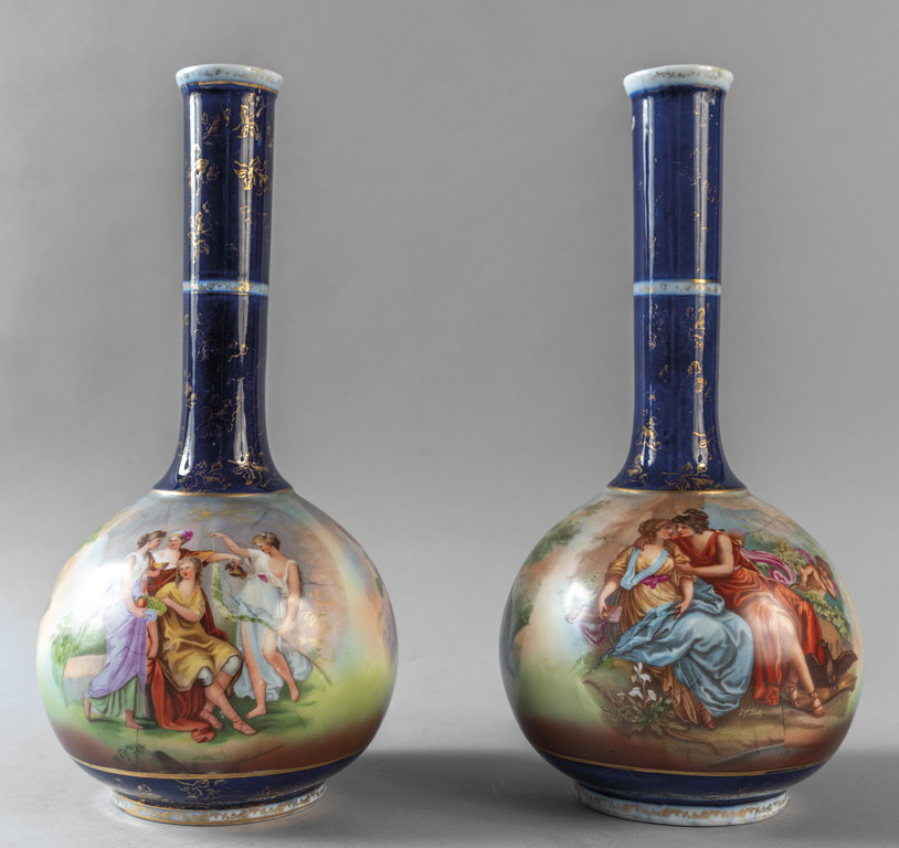 Lotto 0832 | Coppia di vasi a collo lungo, decorazione in