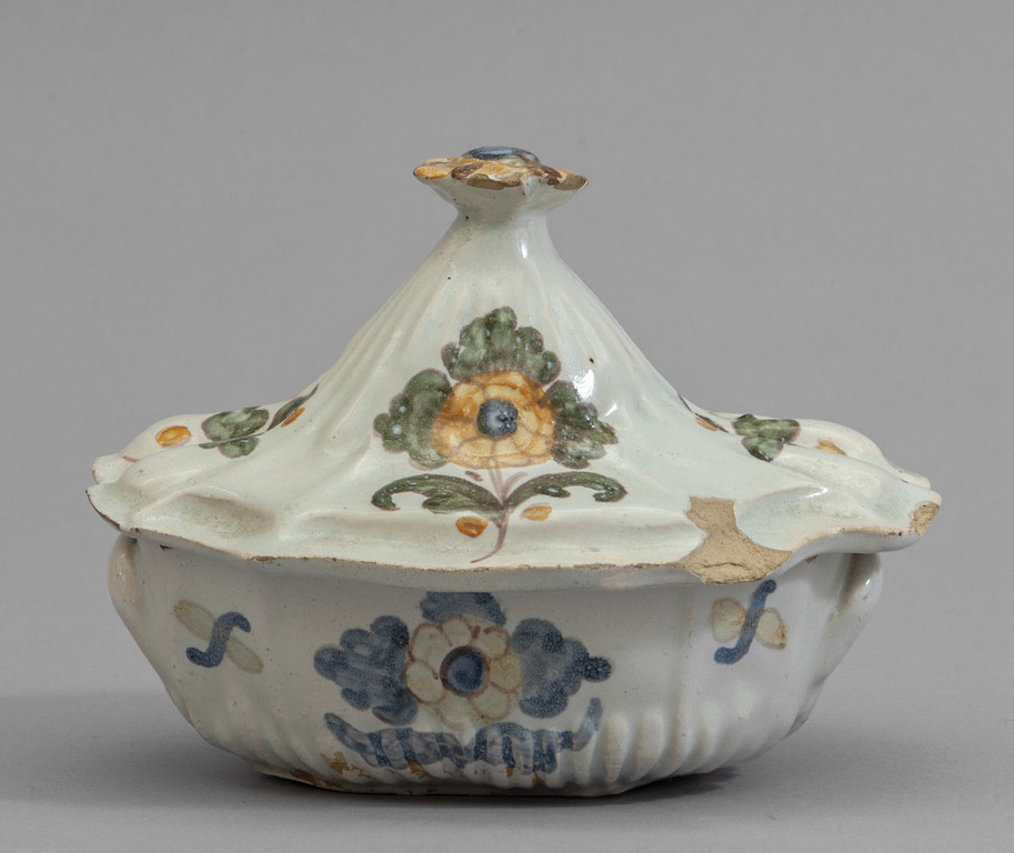 Piccola zuccheriera in maiolica, sec. XVIII