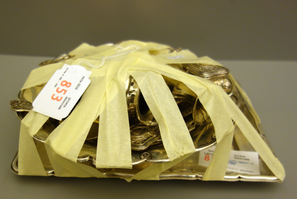 Precedente Lotto 0853 Successivo Aste Boetto - Via Mura dello Zerbino 10R, 16122 Genova ASTA DI ANTIQUARIATO E PITTURA DEL SEC.XIX ASTA DI ANTIQUARIATO E DIPINTI DEL SEC.XIX mercoledì 16 dicembre 2020 ore 10:30 (UTC +01:00) Piccoli oggetti in argento<br>gr.800 Piccoli oggetti in argentogr.800