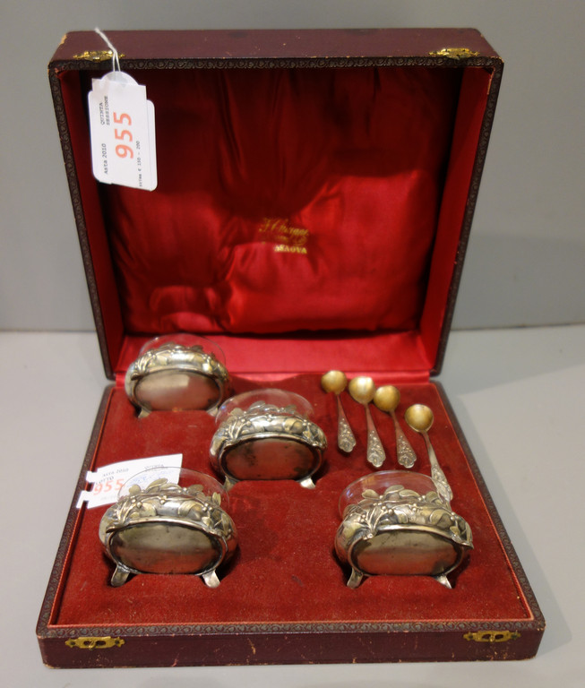 Lotto 0955 | Quattro saliere in argento con vetri nella loro