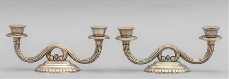 Coppia di candelabri Decò in argento a due luci