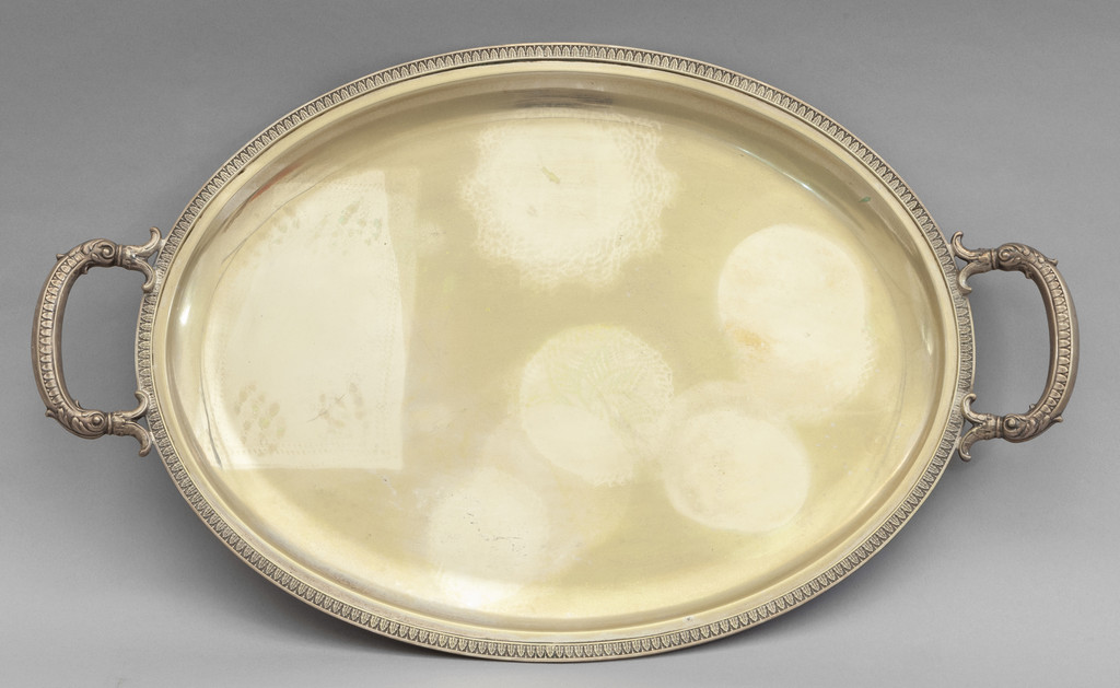 Vassoio ovale in argento con manici<br>cm.60x38,