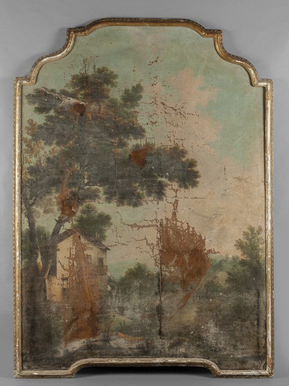Scuola emiliana sec.XVIII "Paesaggio" olio (mancanze)