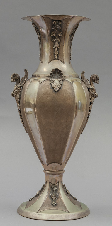 Vaso in argento, prese con grifoni<br>h.cm.39,