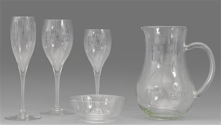 Servizio di bicchieri in cristallo Baccarat composto da 12 bicchieri da vino, 12 da acqua, 12 flut, 6 coppe da Macedonia, 1 caraffa