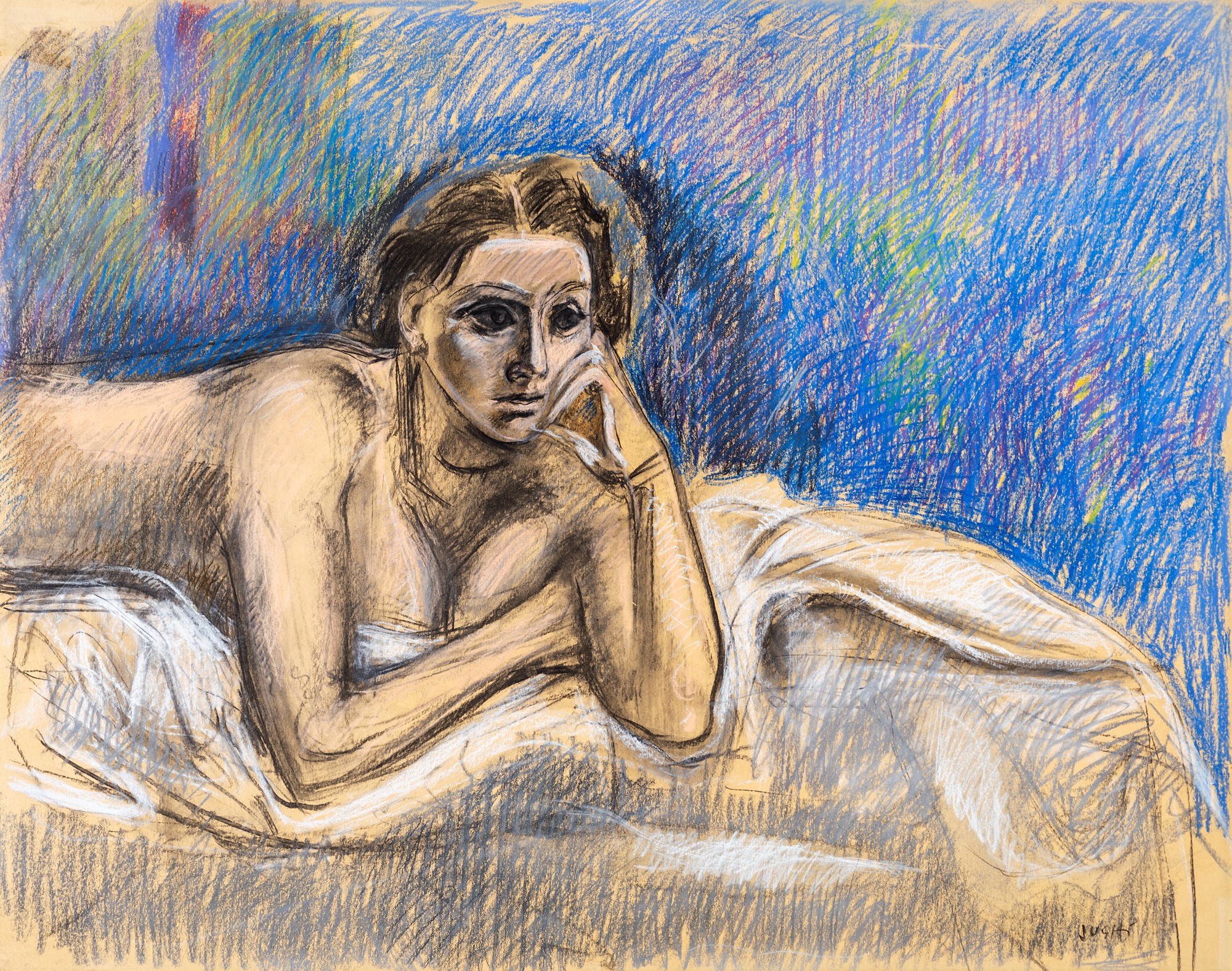 Alberto Sughi - Donna sdraiata - Firma in basso a destra "Sughi". - Pastelli...