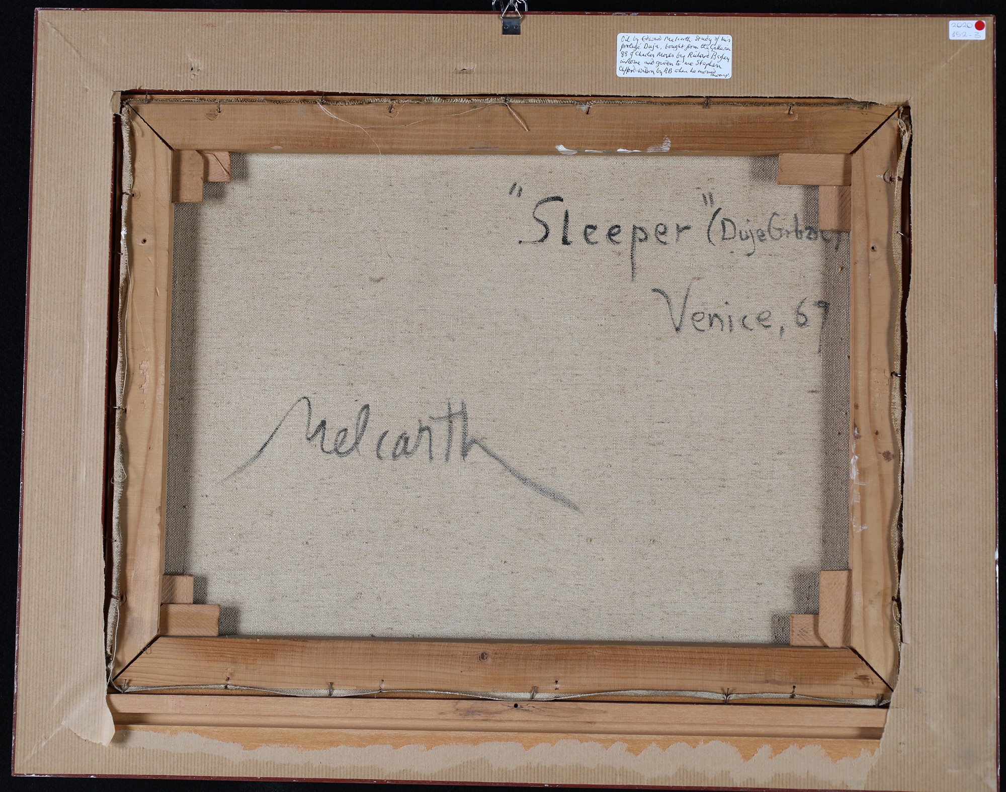 Edward Melcarth - Sleeper, Venice - Firmato Melcarth in alto a destra. Firma, data e titolo al verso. - olio su tela - cm 47x61 - 1979/81
