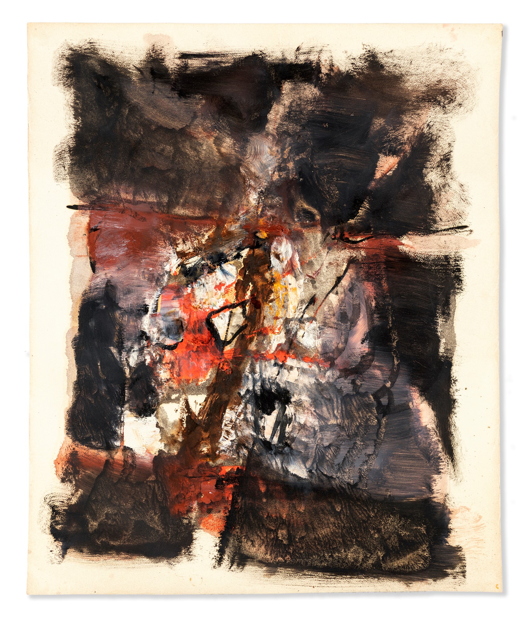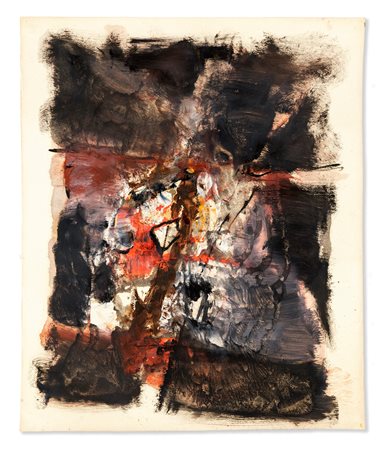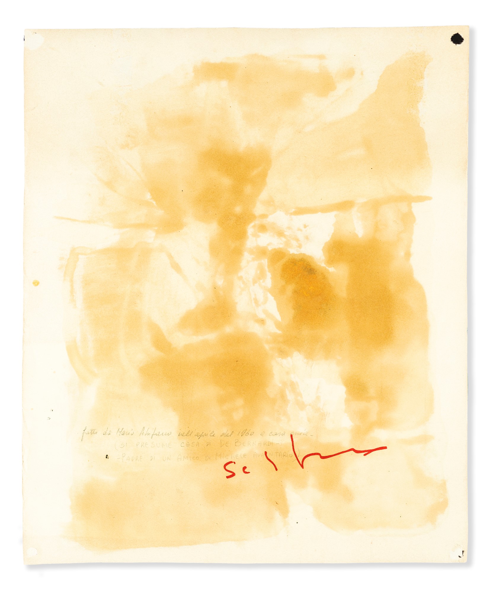 Mario Schifano - Senza titolo - Al verso reca firma "Schifano". - Tecnica mista su carta - 47,5x39 - 1959-60 – Collezione Franca May Gatto (Roma), Galleria Il Narciso (Roma), Collezione Privata (Roma)