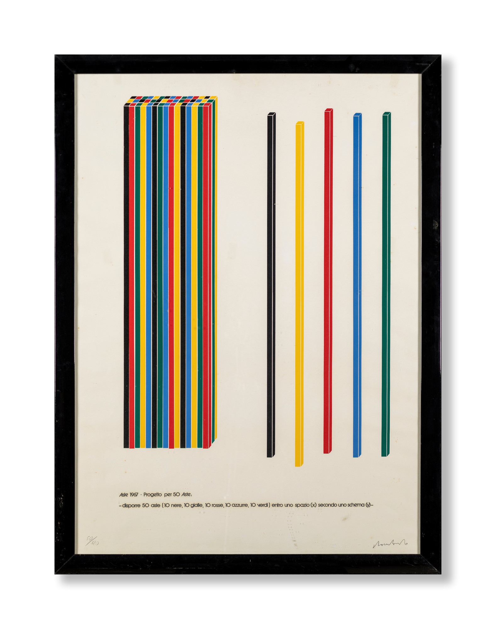 Sergio Lombardo - Aste 1967 - Progetto per 50 aste - Firma e numerazione sul fronte in basso "50/120 Lombardo" - Serigrafia - 100x70 - - Coll. Eredi G. Carandente
