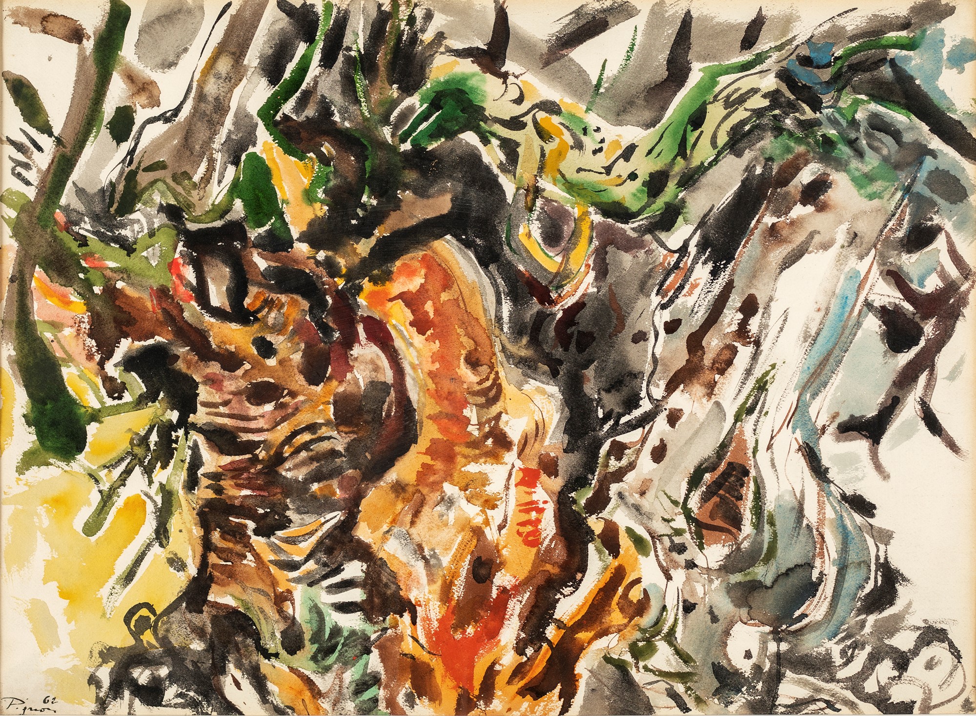 Edouard Pignon - L'Olivier - Firma e data sul fronte in basso a sinistra. Al verso reca titolo - tempera su carta - 56x75,8 - 1962