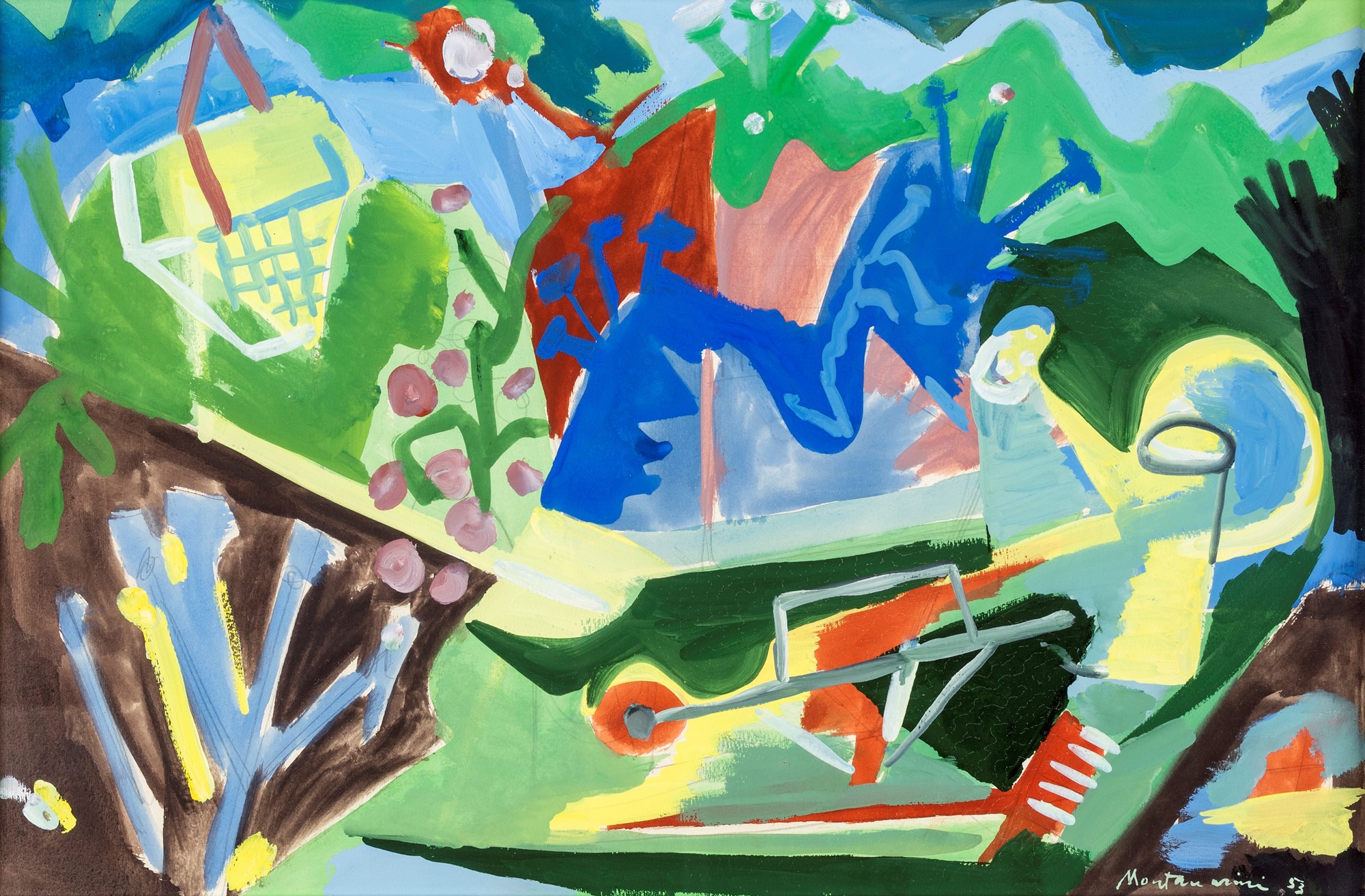Luigi Montanarini - Composizione - Firma e data sul fronte in basso a destra "Montanarini '53" - Tempera e matita su carta - 40x60 - 1953