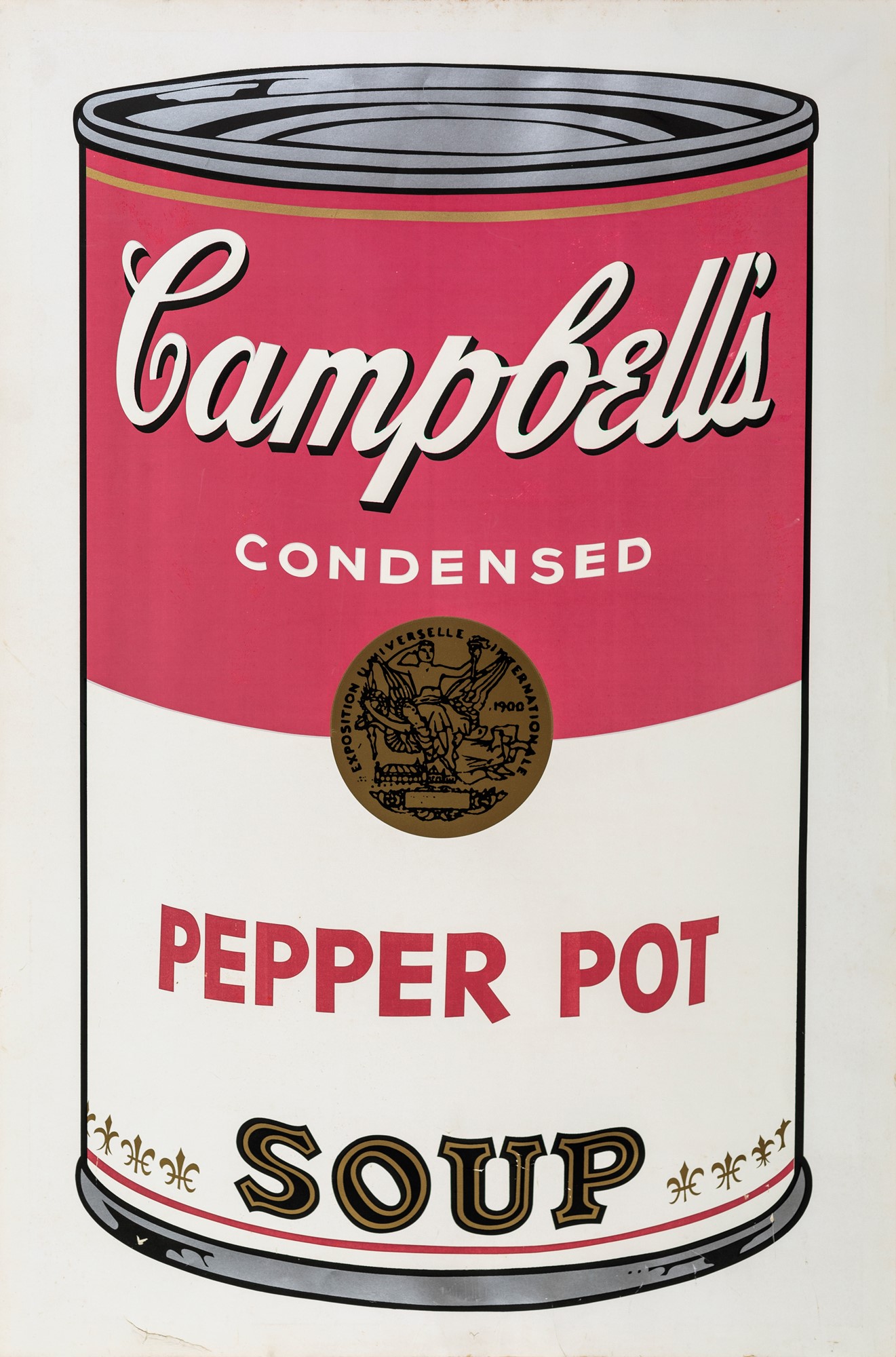 Andy Warhol - Pepper pot soup, dalla serie Campbell's Soup I - Al verso reca firma e numerazione "Andy warhol 229/250". - Serigrafia - 88,1x58,3 - 1968 - Andy Warhol Prints: A Catalogue Raisonne 1962-1987, a cura di F. Feldamn, J. Schellmann, C. Defendi (Ed. 2003). Pagina 72, ill. 51. - Coll. Eredi G. Carandente