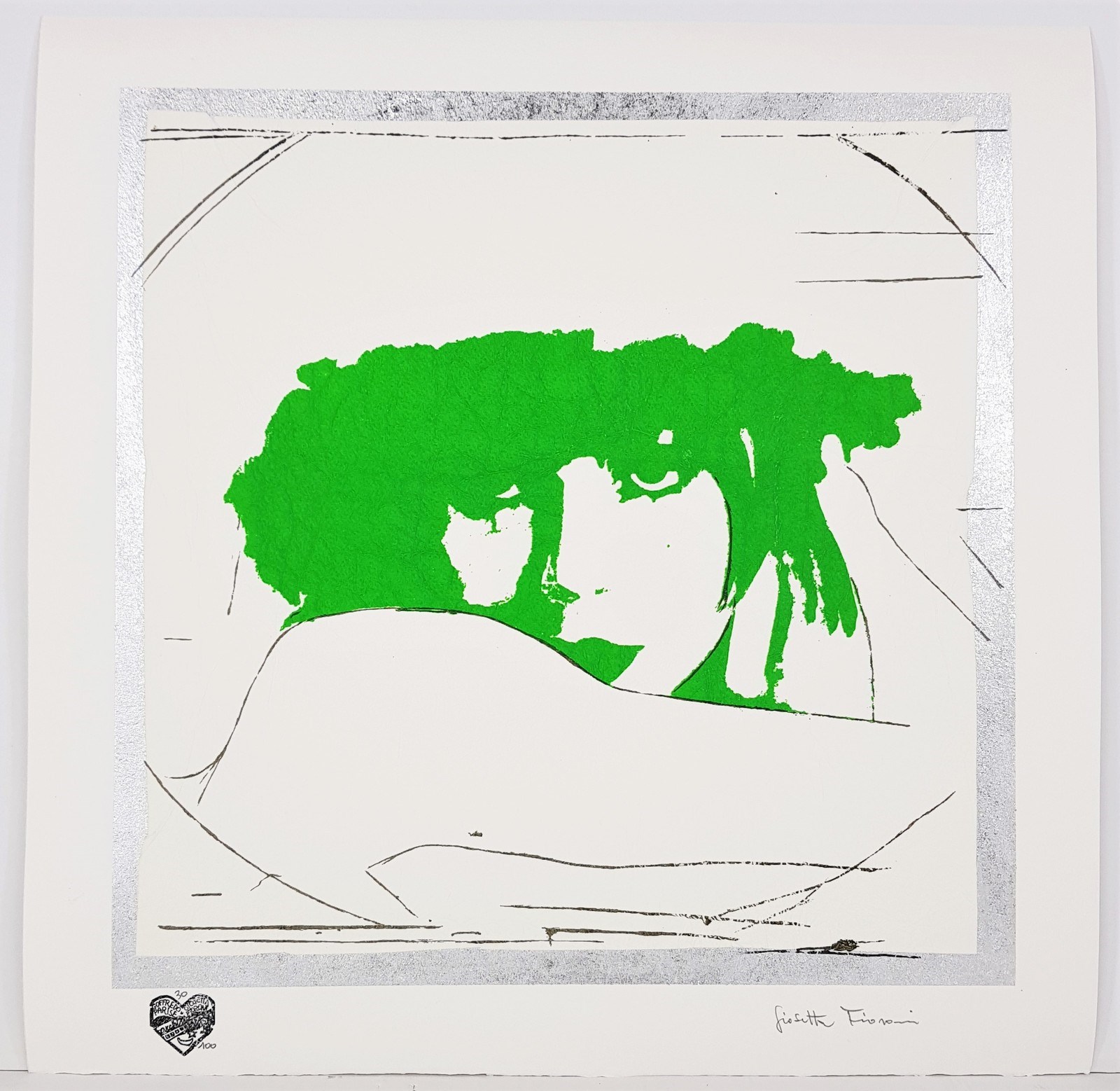 FIORONI GIOSETTA (n. 1932) Doppio Liberty Verde. Serigrafia polimaterica. Cm 50,00 x 50,00. 30/100. Tiratura e firma in basso a matita. Carta Pescia. Edizione totale: 100 esemplari numerati da 1/100 a 100/100 + 25 esemplari numerati da I/XXV a XXV/XXV + p.a. Certificato di provenienza La Spirale, Milano con timbro a secco dell'Archivio Parise Fioroni.