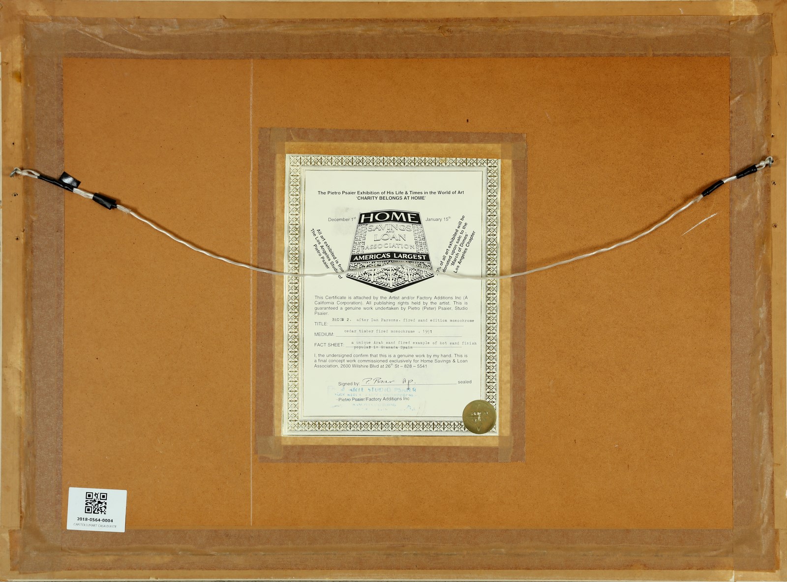 PSAIER PIETRO (1939 - 2004) Bacon 2 after Dan Parsons. Serigrafia su legno.. Cm 51,00 x 33,00. P.a. Tiratura, firma e anno in basso. Al retro certificato di autenticità con firma e timbro dell'artista. Cornice presente