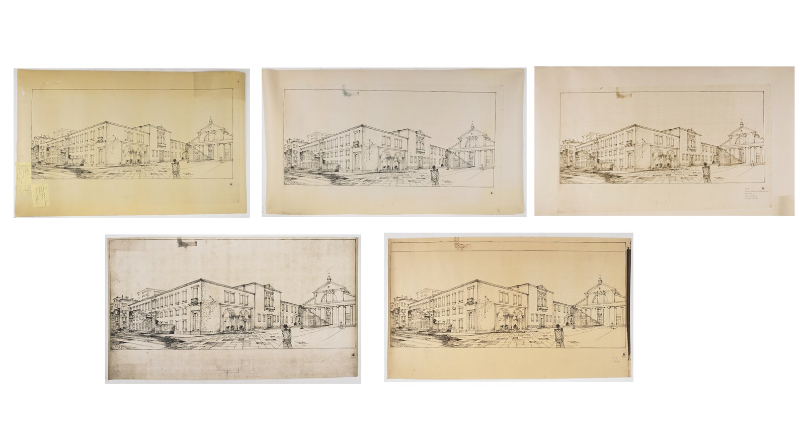 PORTALUPPI PIERO (1888 - 1967) - Lotto composto da n.5 fogli. Museo Scienza Tecnica, Via San Vittore Milano.