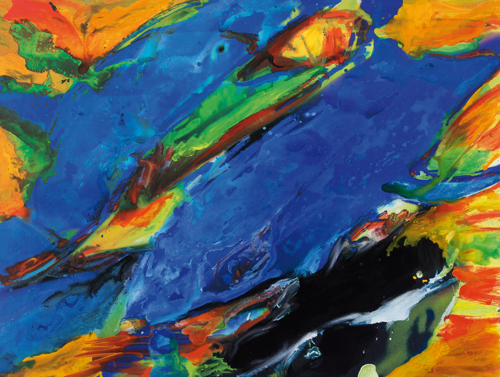 DANIELE GIRARDI Verona 1977 Chromocosmo New York, 2007 tecnica mista su tela cm. 75x100, firma, titolo e anno al retro, dichiarazione d'autenticità dell'artista su foto, fotografia ritraente l'artista e l'opera allegata.