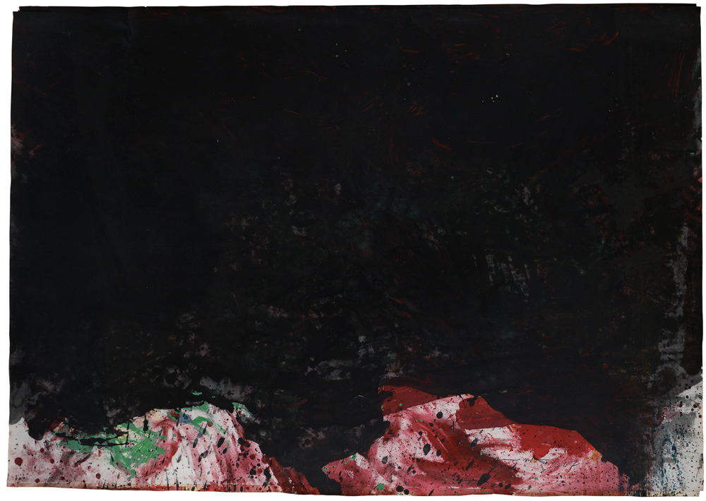 HERMANN NITSCH Vienna 1938  Senza titolo, 2007 olio e tecnica mista su carta cm. 103x150, firma e anno in basso a destra, dichiarazione d'autenticità dell'artista su foto.