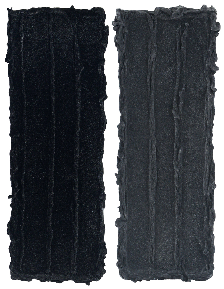 PINO PINELLI Catania 01/10/1938  Pittura Nero Grigio, 1994 tecnica mista su due elementi cm. 59x21 cadauno, totale cm. 59x42, firma, titolo e anno al retro dell'elemento nero, dichiarazione d'autenticità dell'artista su foto, opera priva di cornice.