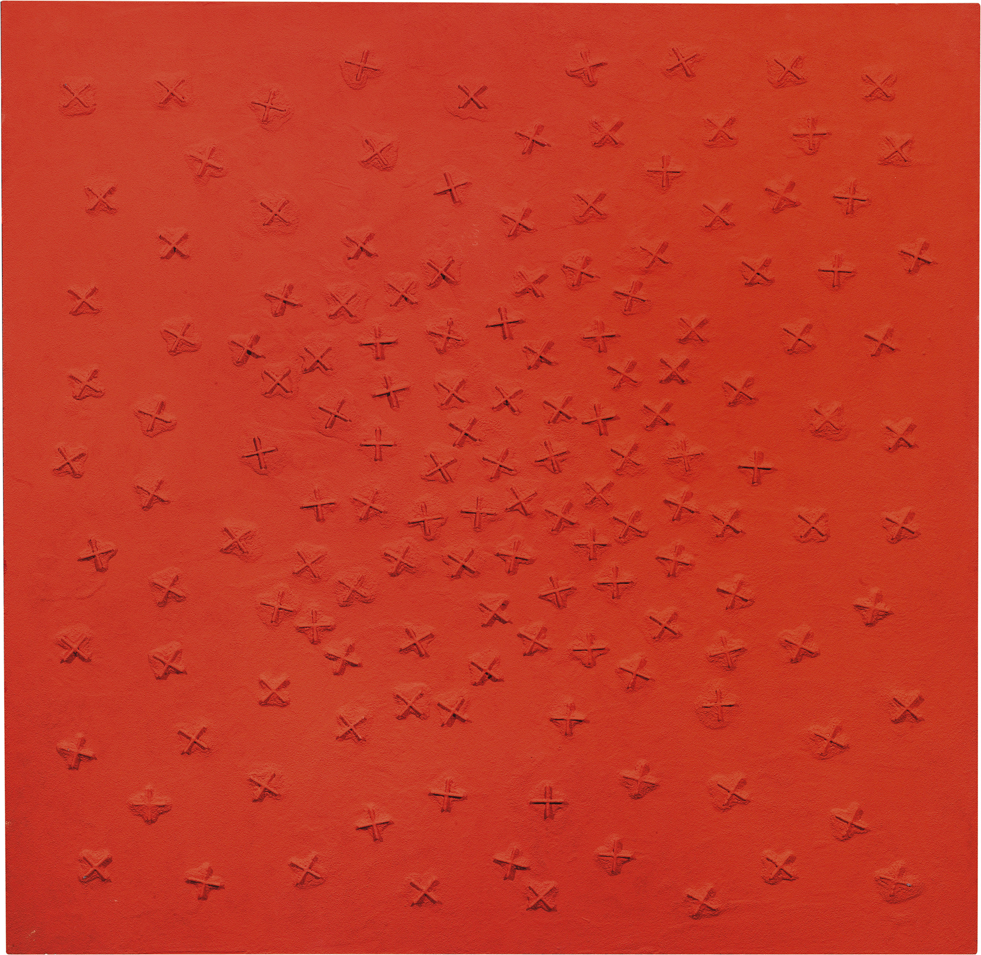 Idropittura su sabbia e metacrilato su tavola, cm. 100x100