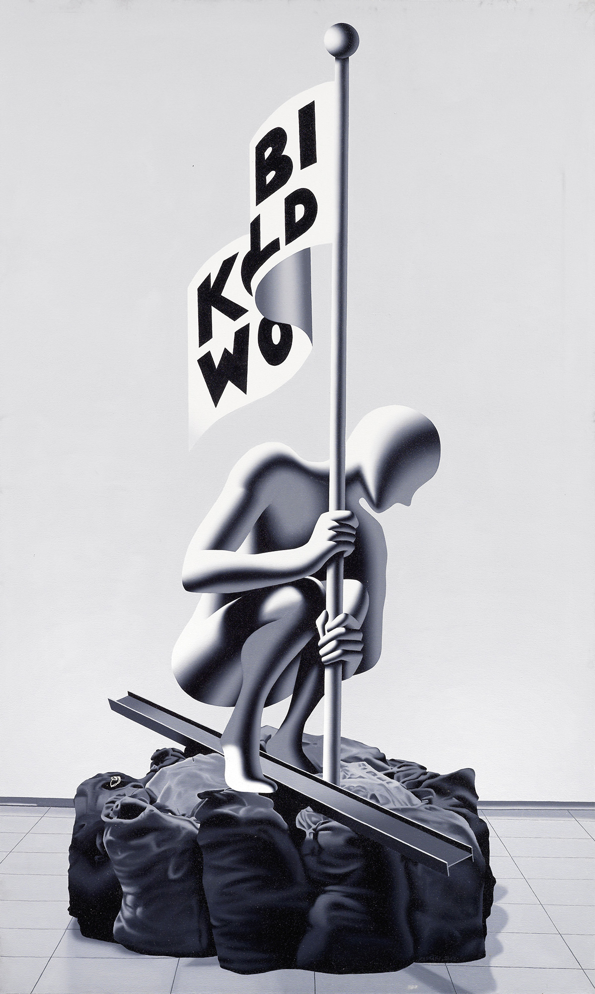 Firma, titolo e data al verso sulla tela: Mark Kostabi / The Conquest / 2003 / 9-11-03 - Calorescence; sul telaio: etichetta con n. 2231 e timbro Studio Lattuada, Milano