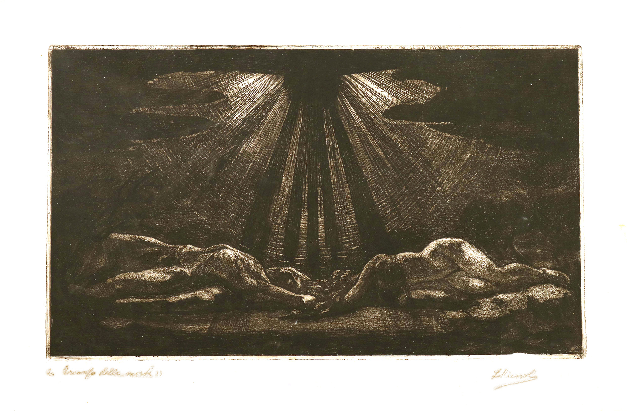 Firma a matita sul margine in basso a destra: L. Russolo, titolo in basso a sinistra: «Trionfo della morte».