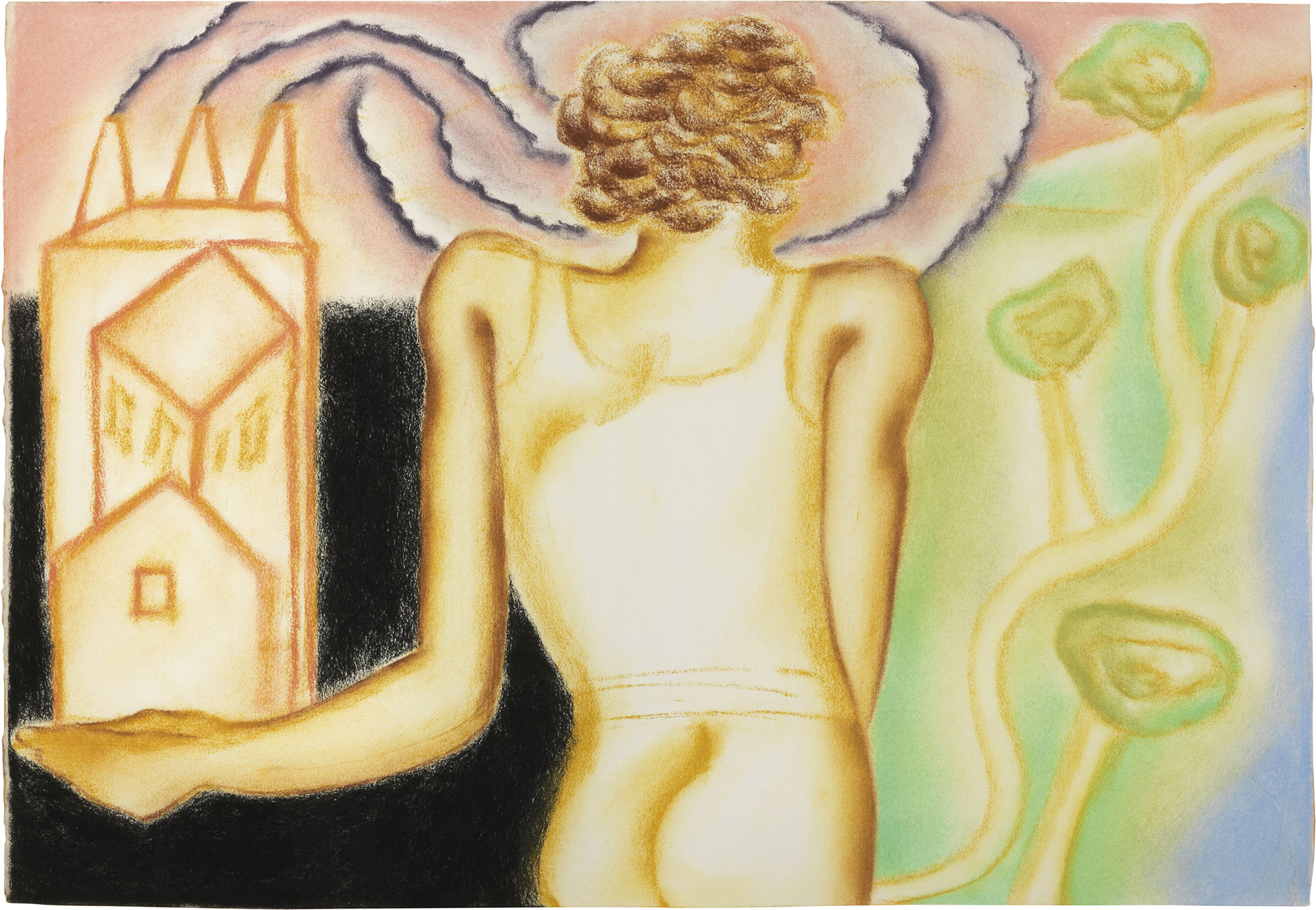 Titolo, firma, data e dedica al verso: "Vigilia" / Francesco Clemente / Roma 18 marzo MMIII / ad [...] con affetto.