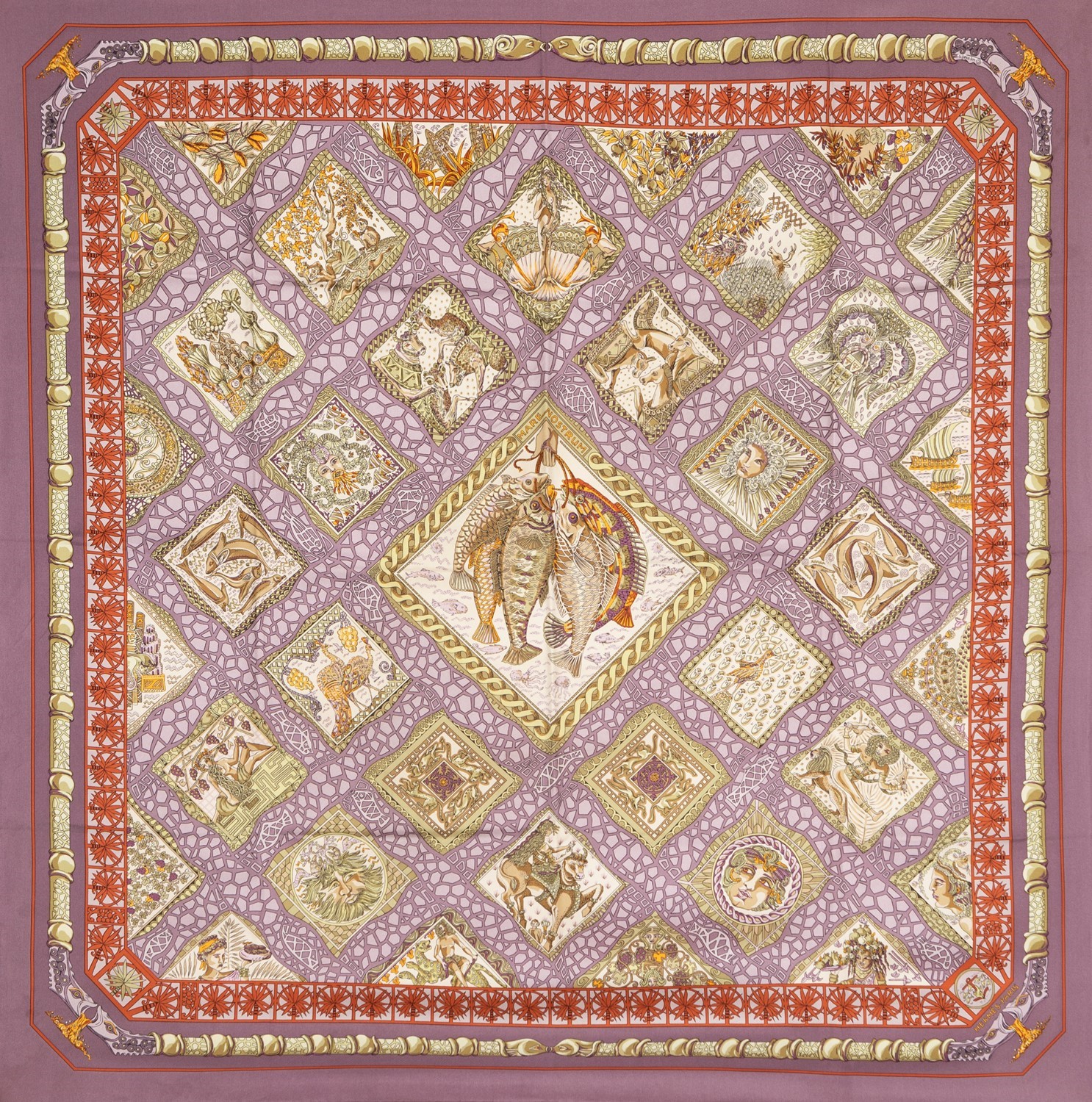 in seta, colori vari, bordo color viola, Annie Faivre.